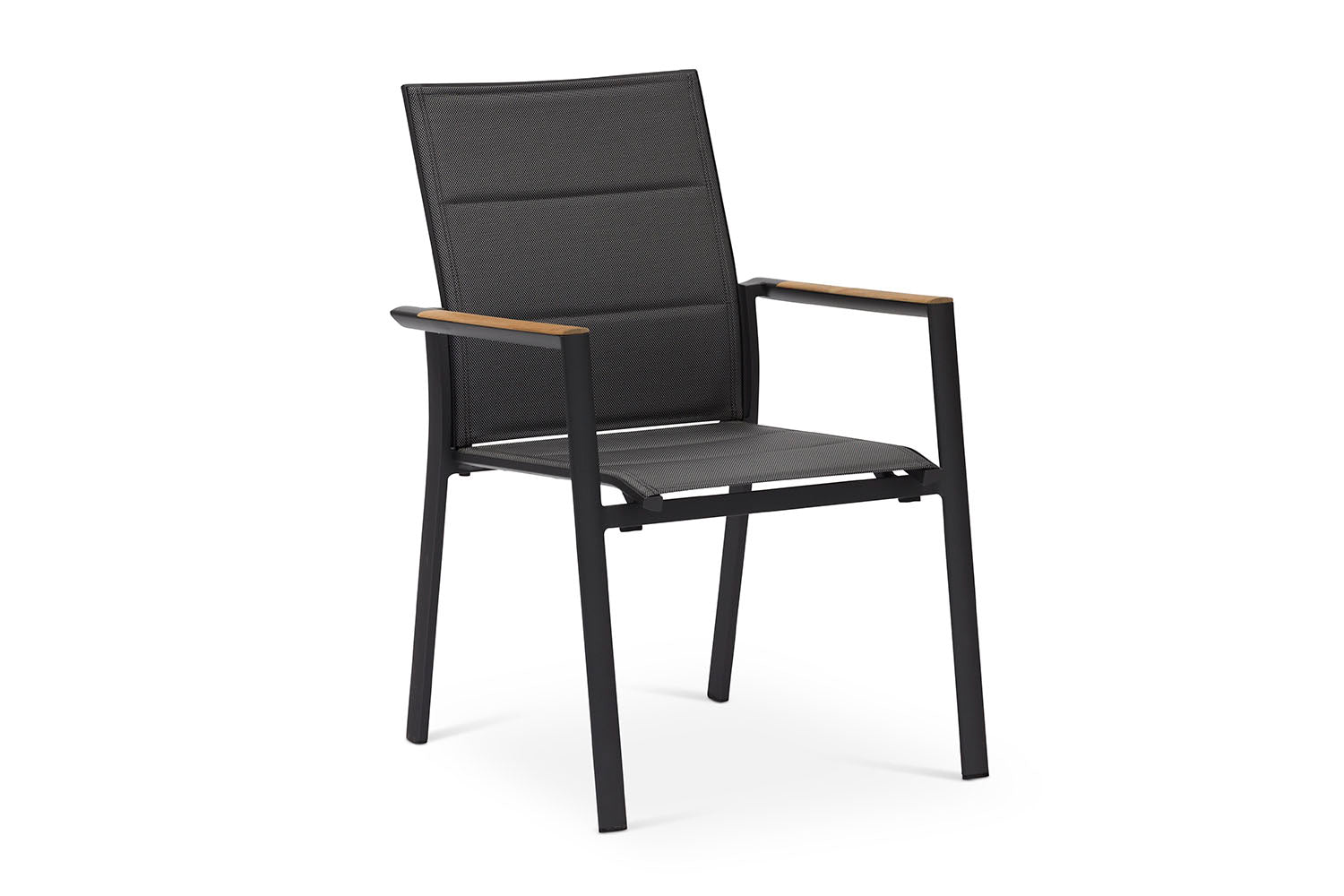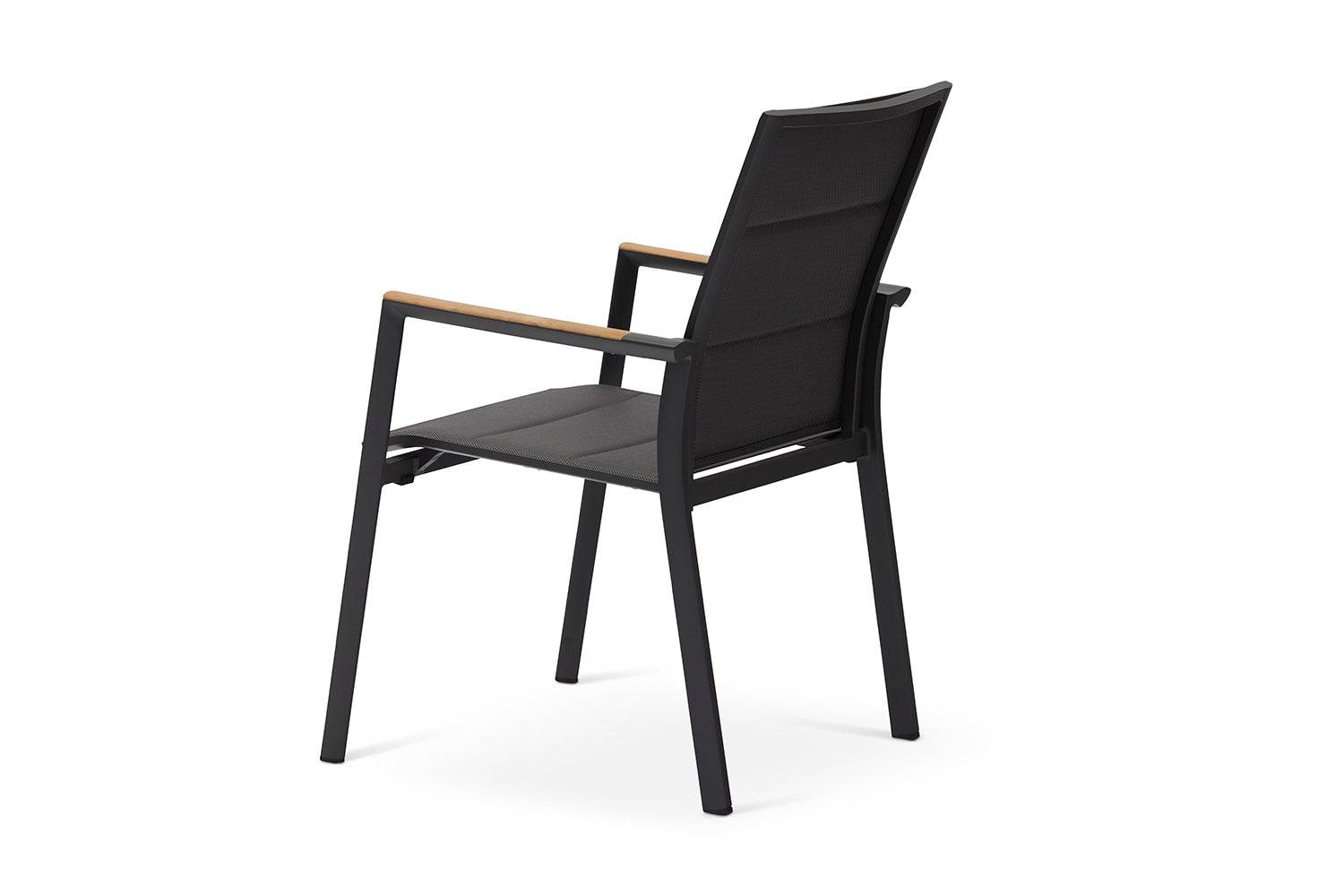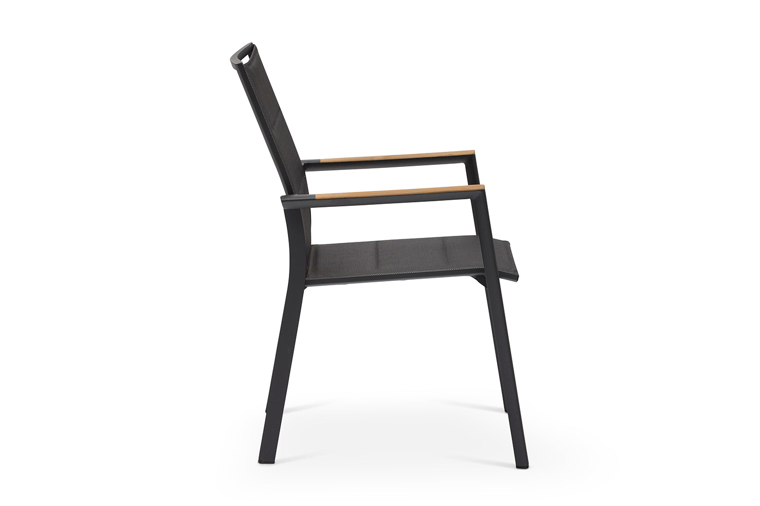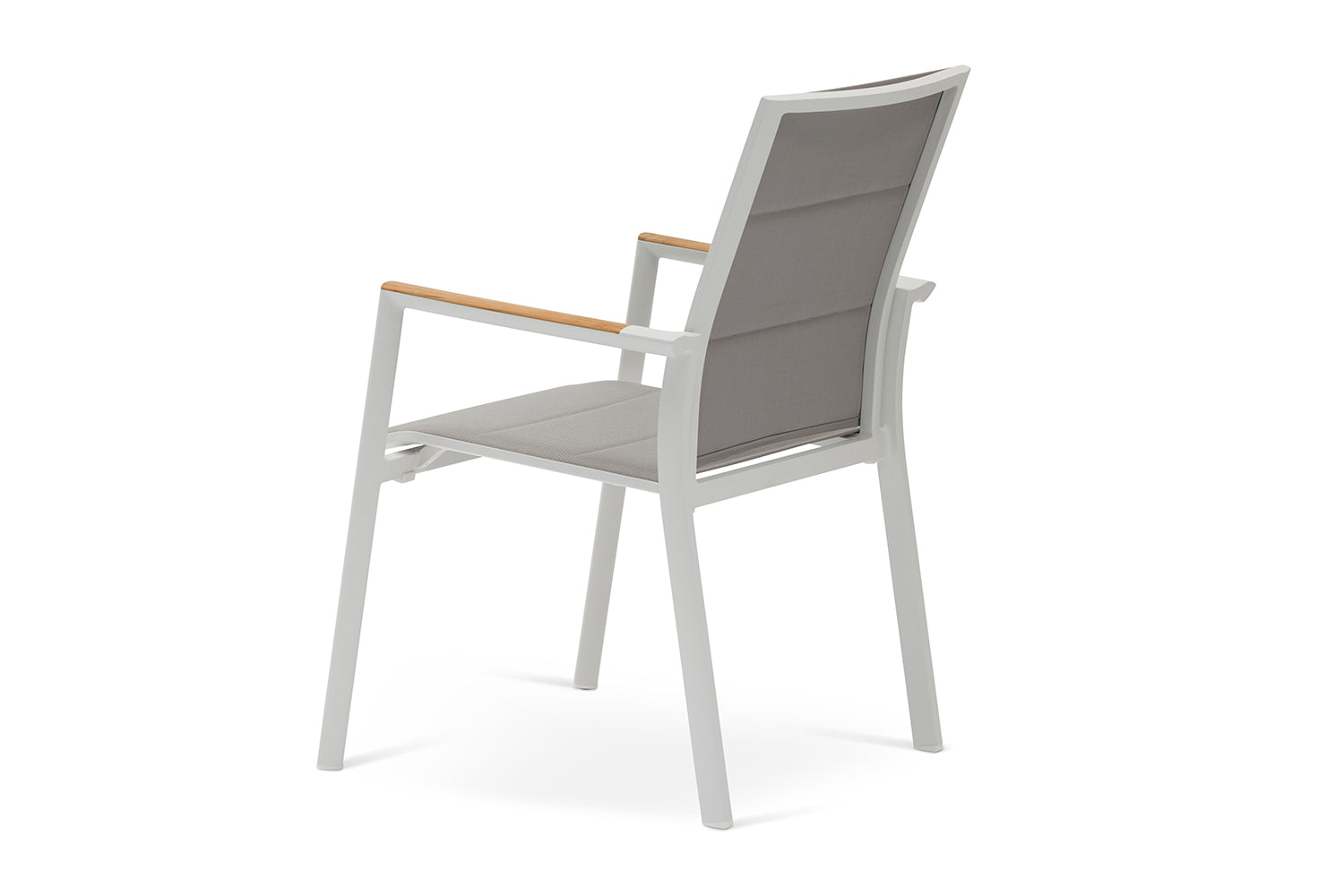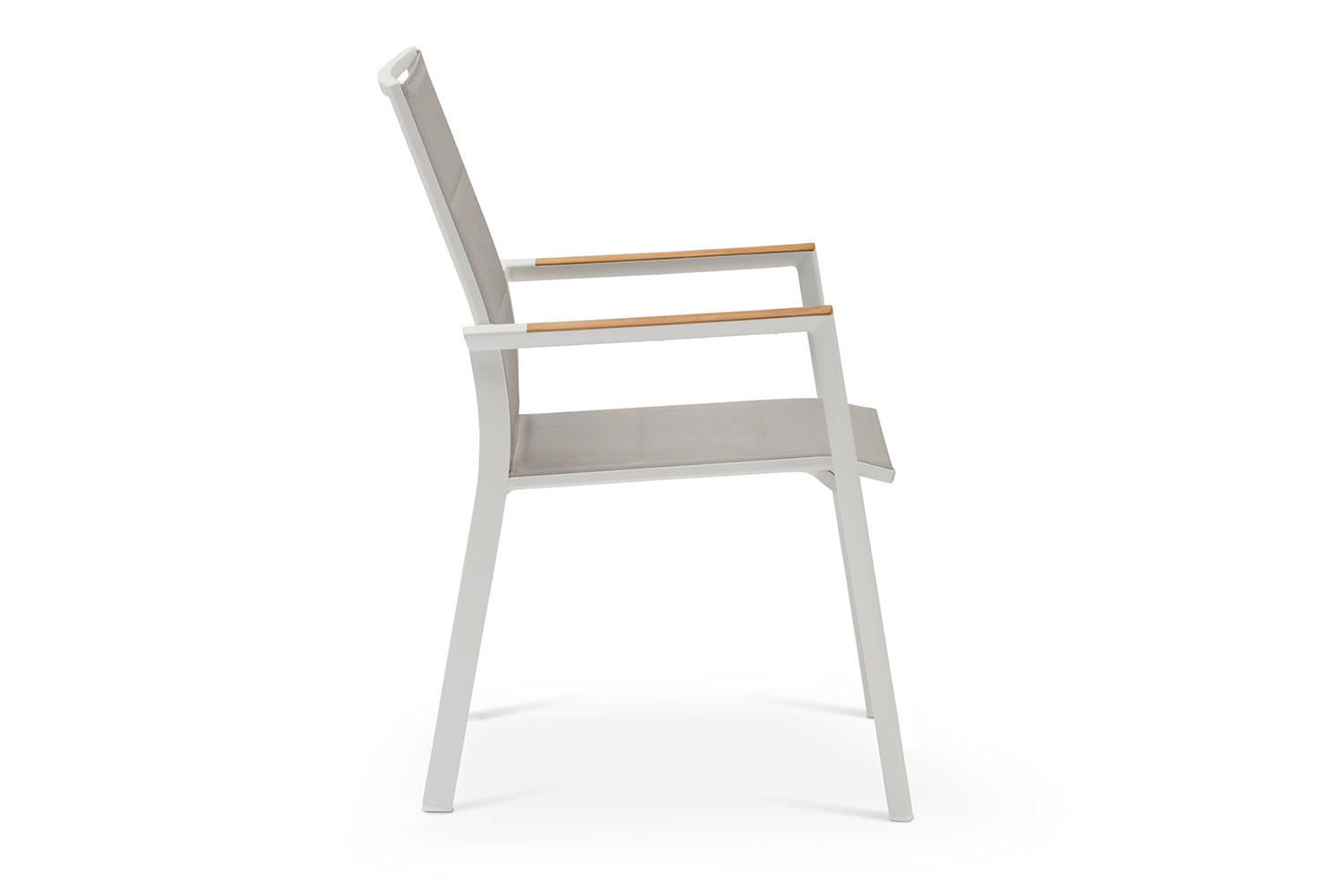 כיסא מרווח ונח במיוחד עשוי שלדת אלומיניום, עם ידיות בשילוב עץ טיק, מושב וגב הכיסא עשויים בד רשת ארוג עמיד ונח לישיבה, קל לניקוי. כיסא קל משקל וניתן לערום אחד על גבי השני.