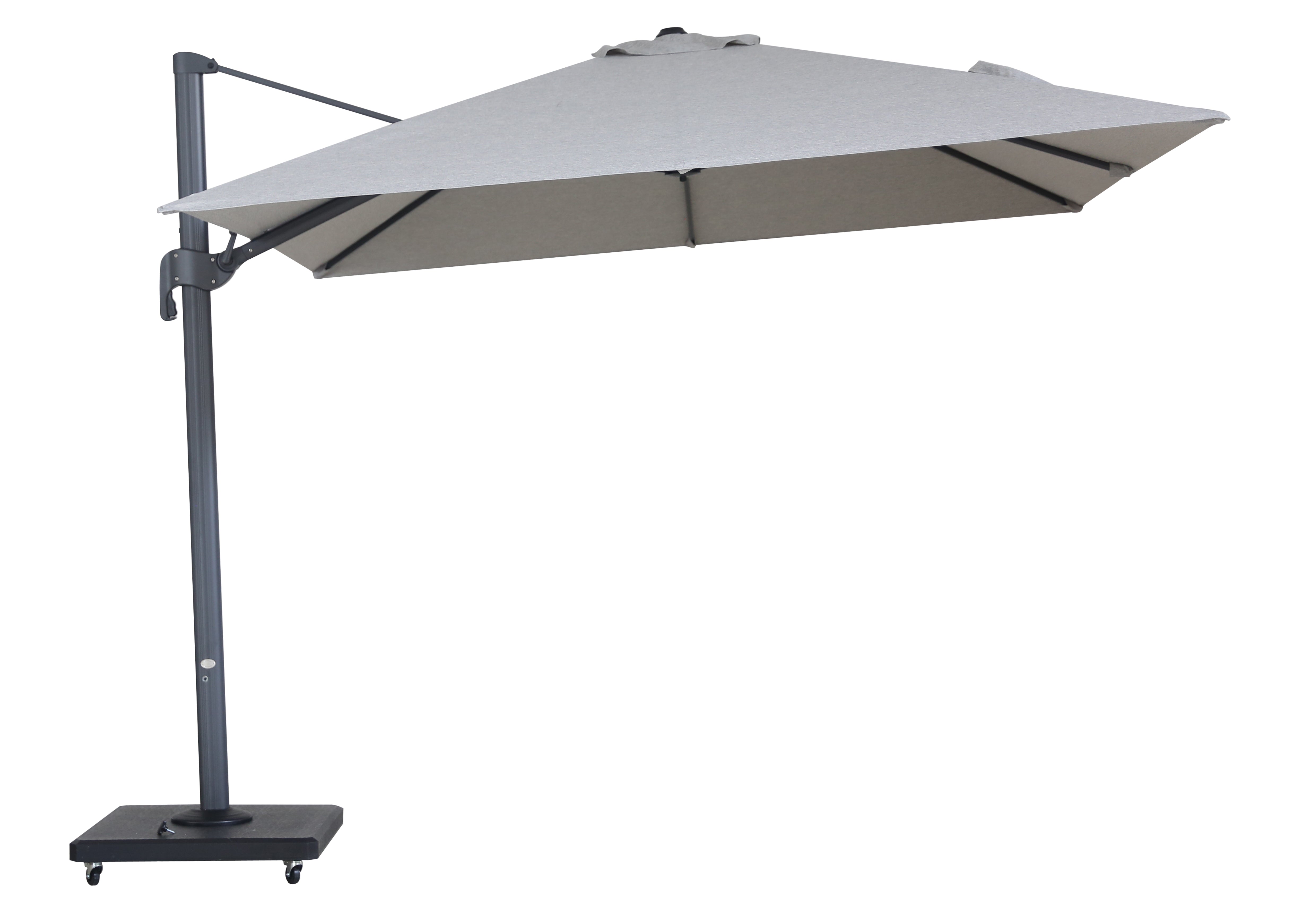 שמשייה לגן דגם ויקטוריה - שמשיית צד מתכווננת עם בסיס אבנים יציב, עשויה אלומיניום ובד טאופ, מציעה הצללה רחבה עם מראה קליל וקומפקטי.