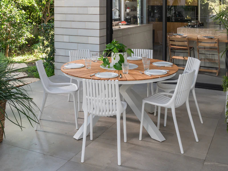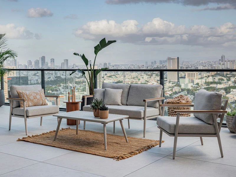 הישראלי: עץ טיק טבעי, למראה חמים ואלגנטי, אלומיניום בצביעה בטכנולוגיה מיוחדת לעמידות ארוכת טווח, בדי חוץ עמידים, ראטן סינתטי איכותי, ושילובים עדכניים של עץ, אלומיניום וחבלים