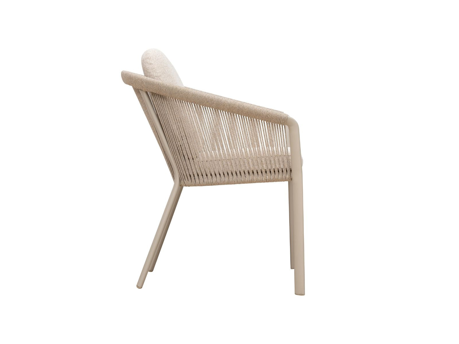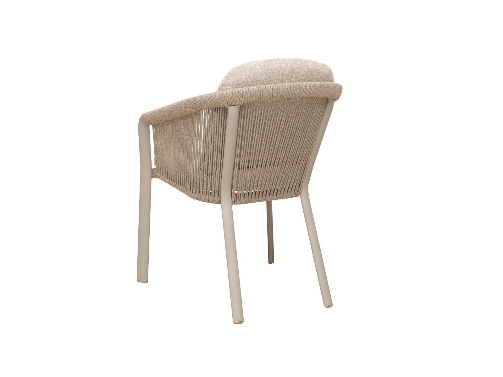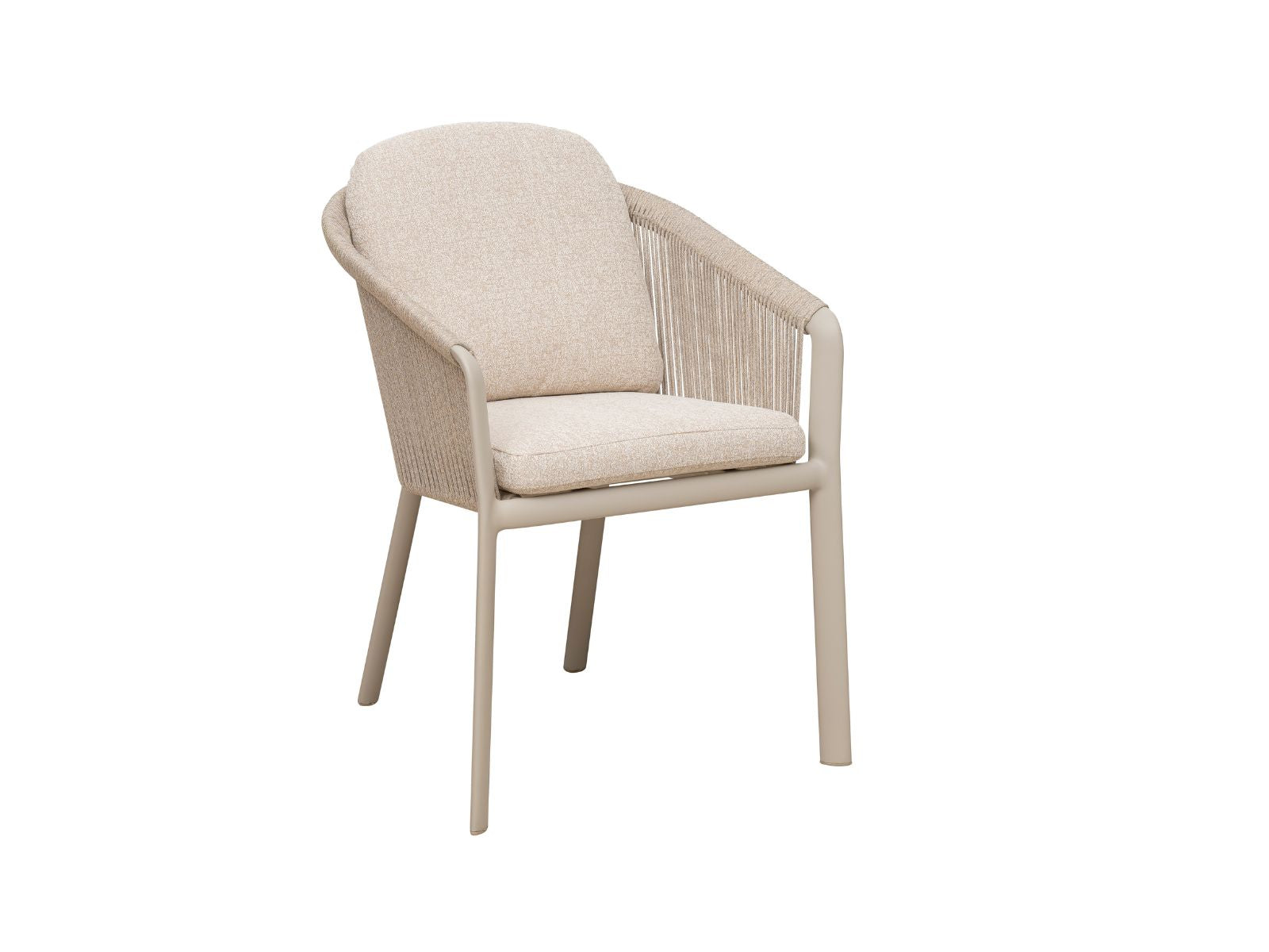 כיסא אוכל עשוי מאלומיניום בשיטת צביעה POWDER COATING מחופה חבלים בשזירה ישרה.