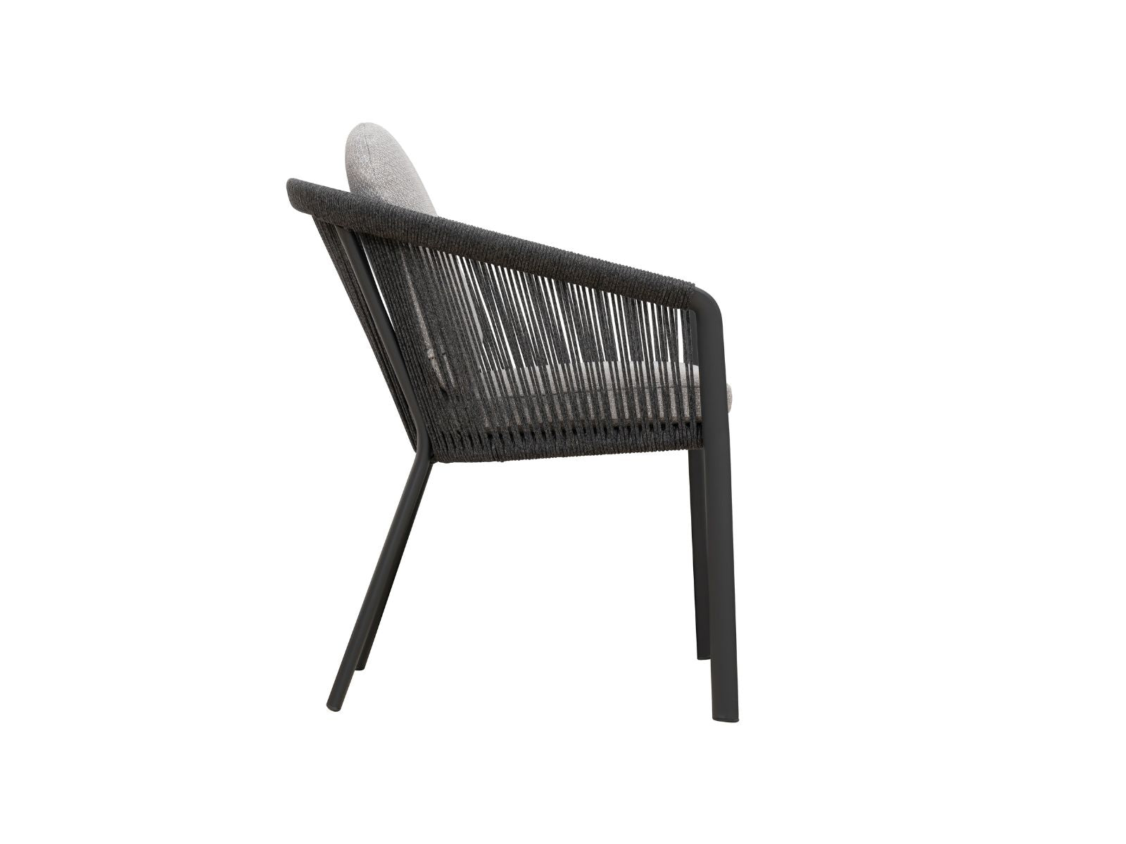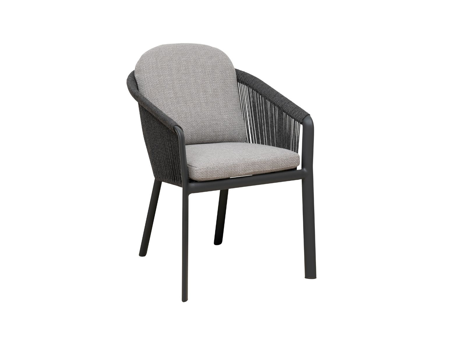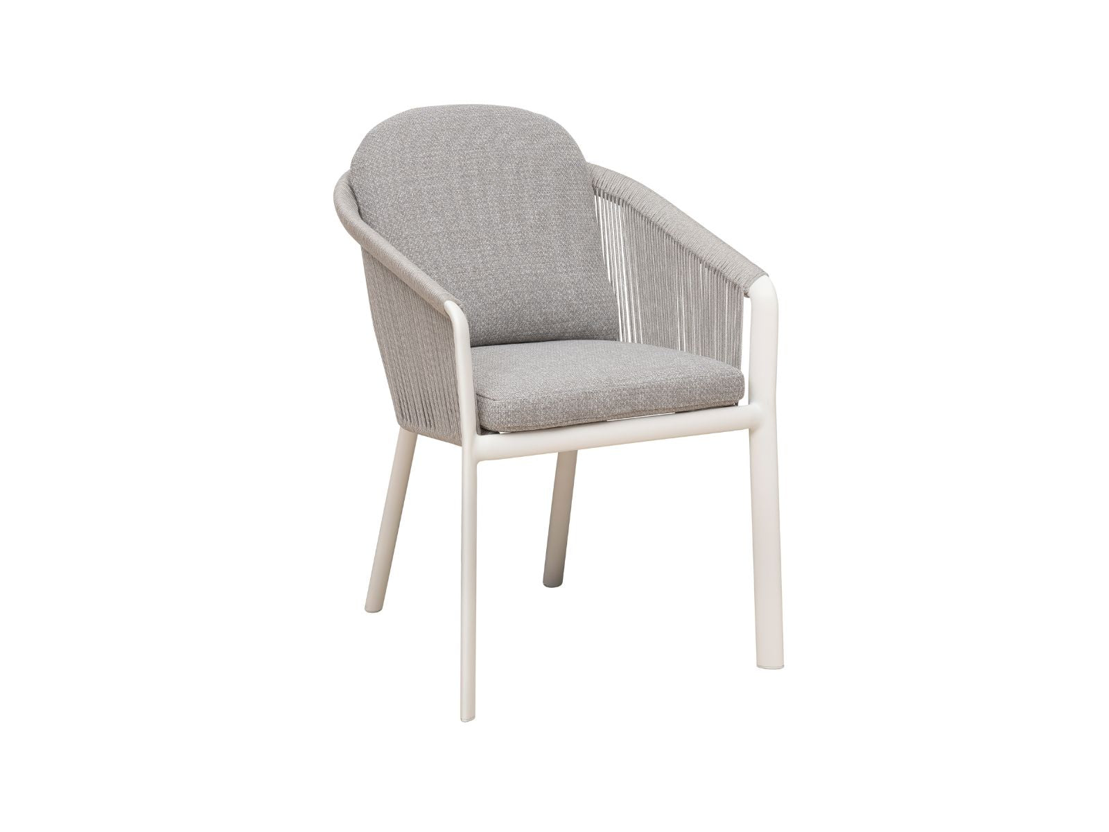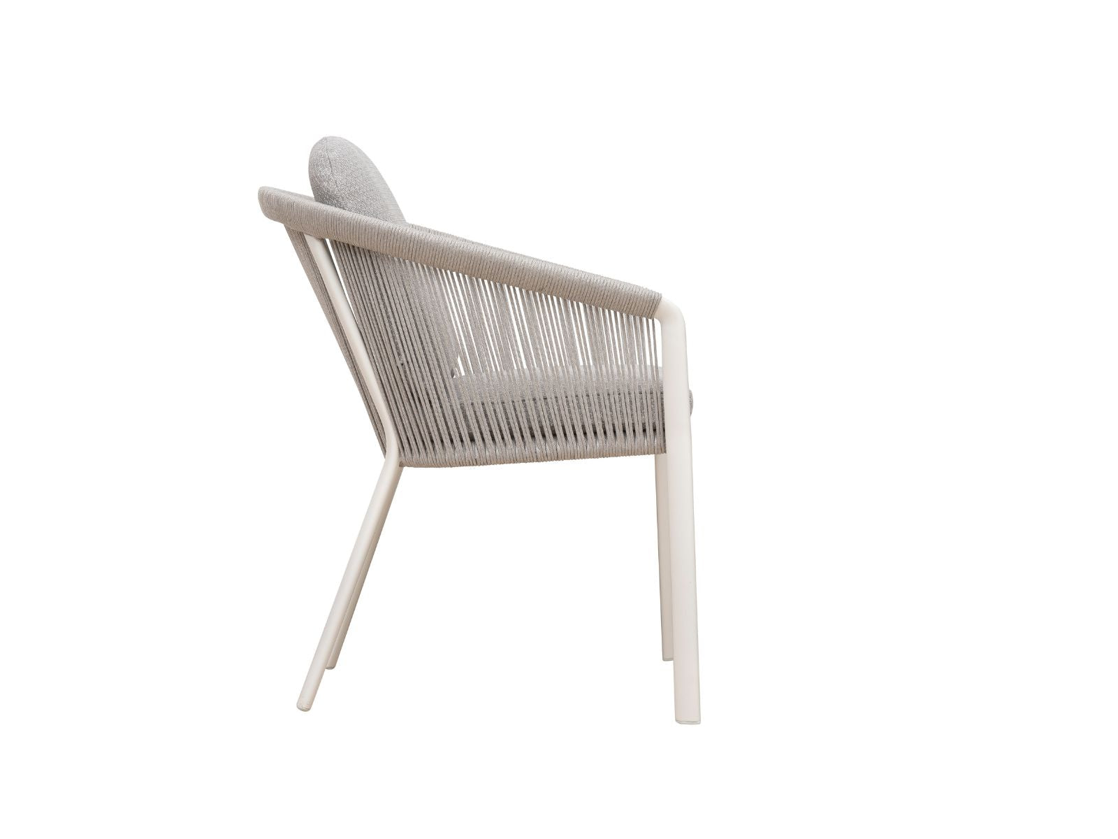 כיסא אוכל עשוי מאלומיניום בשיטת צביעה POWDER COATING מחופה חבלים בשזירה ישרה.