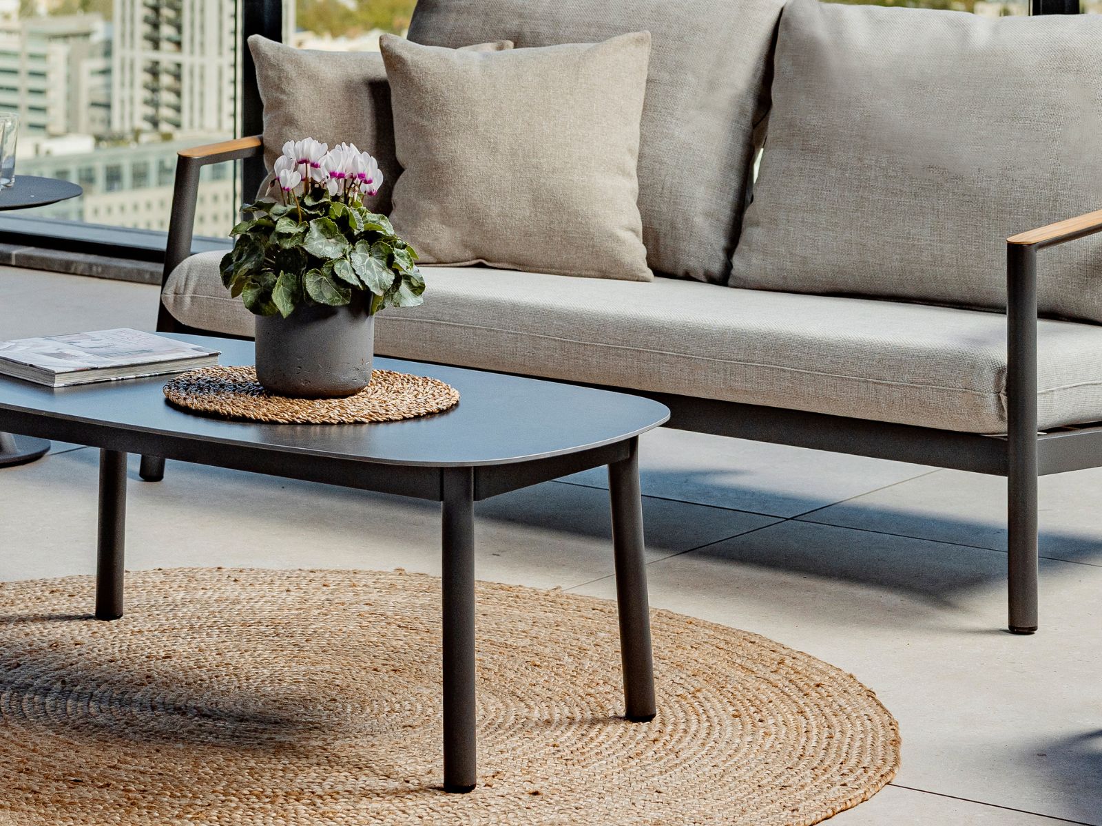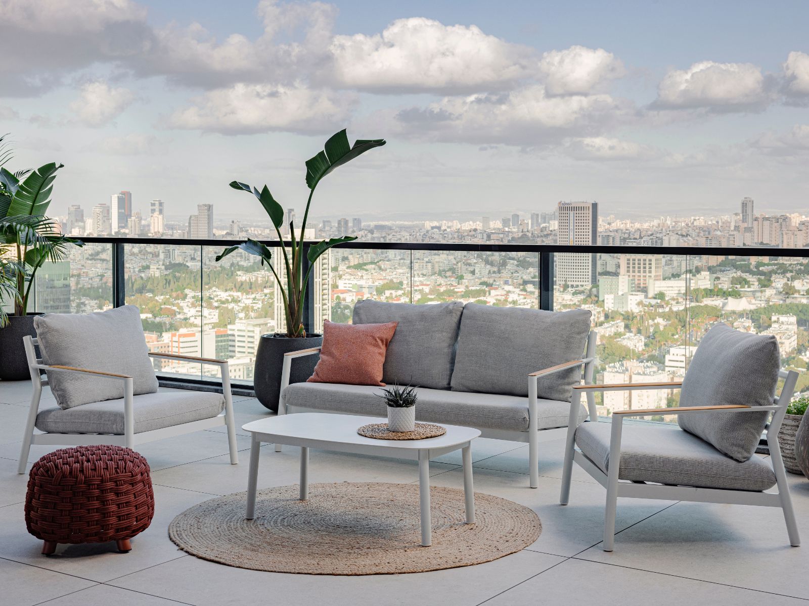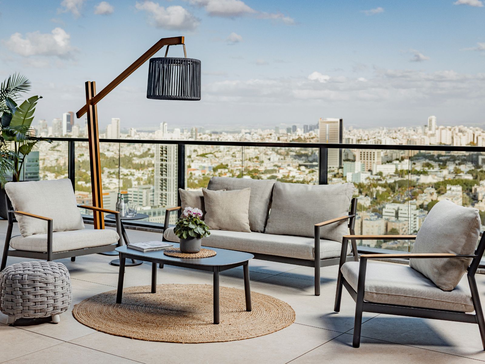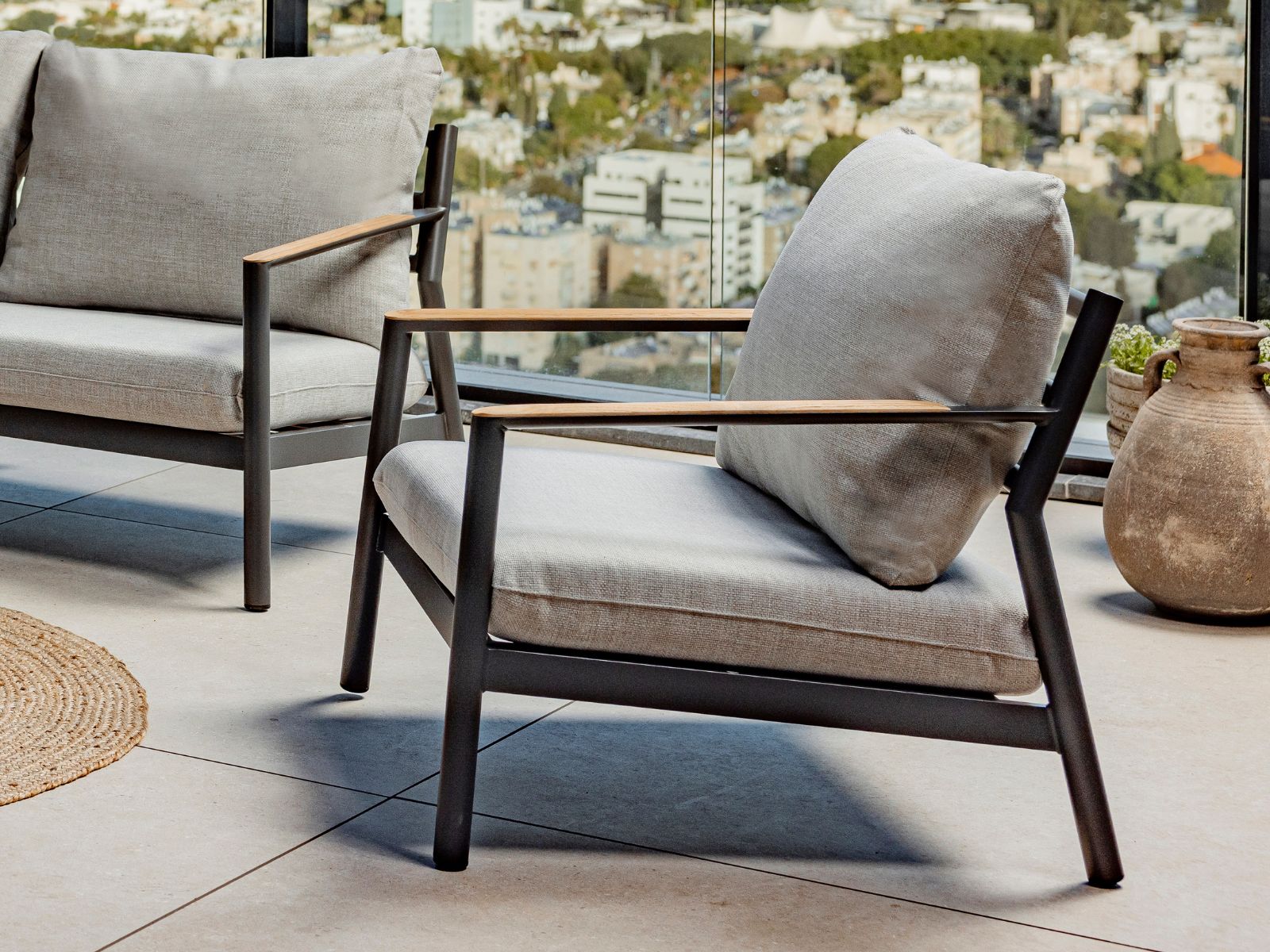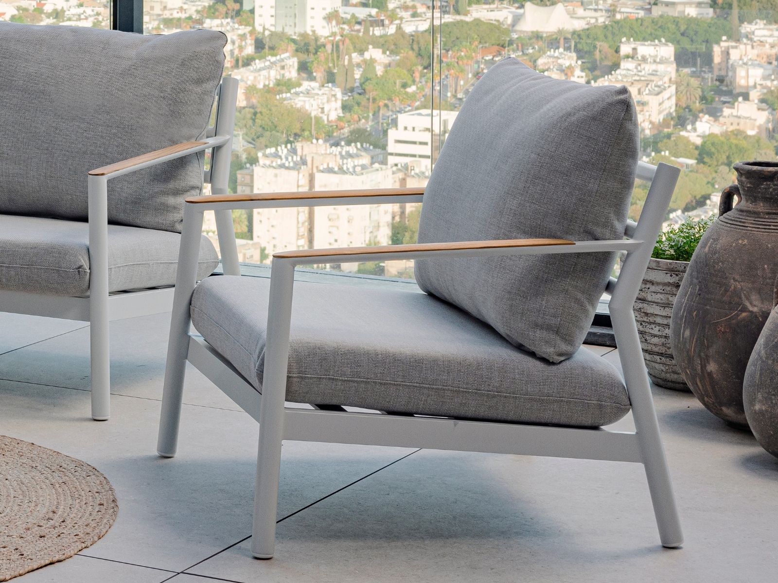 כריות מושב וגב מערכת עשויות בד חוץ איכותי, עמיד ונעים למגע.