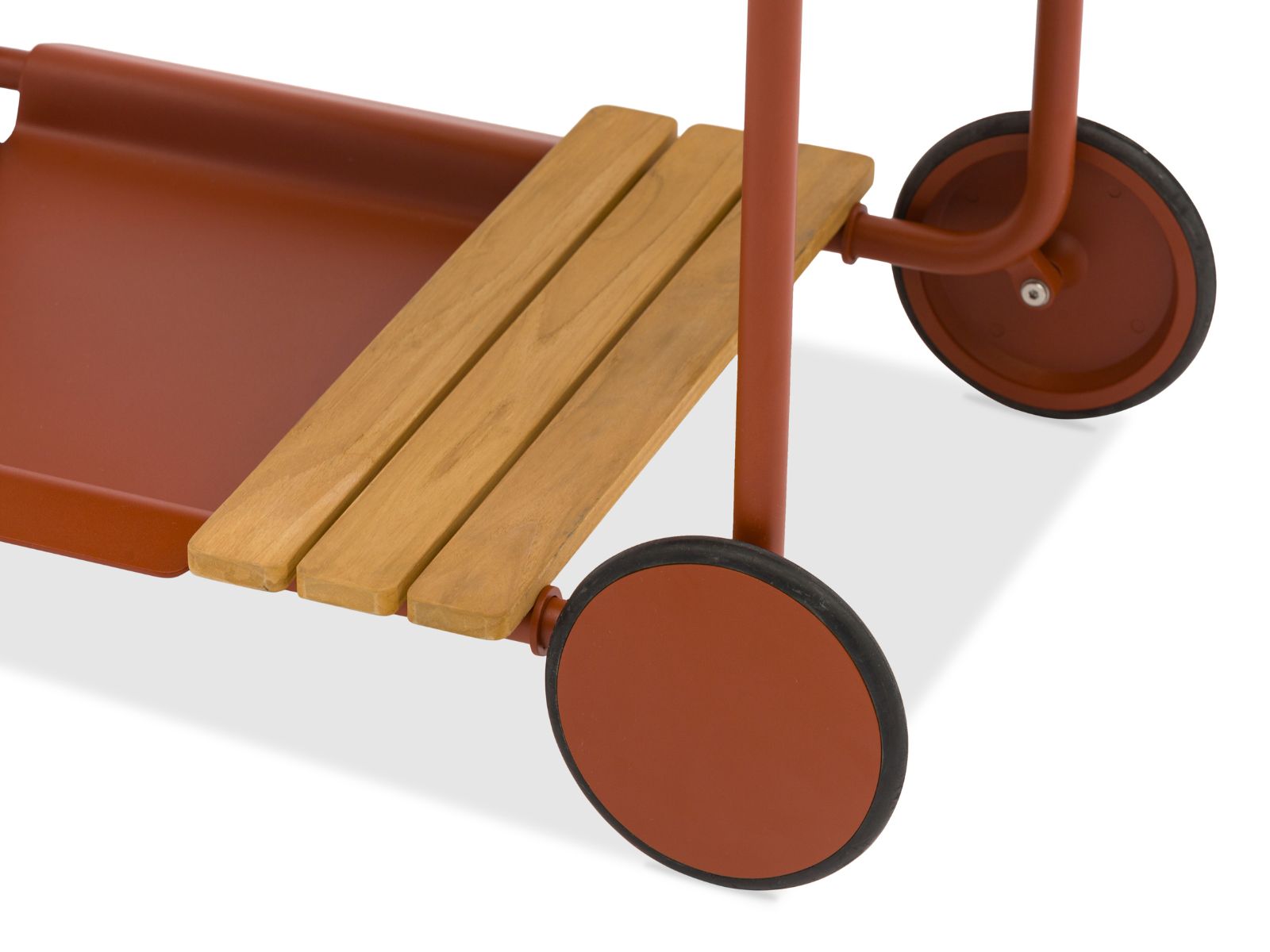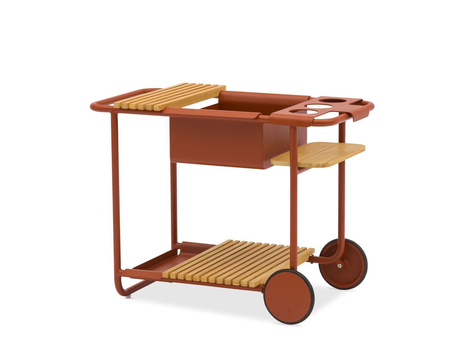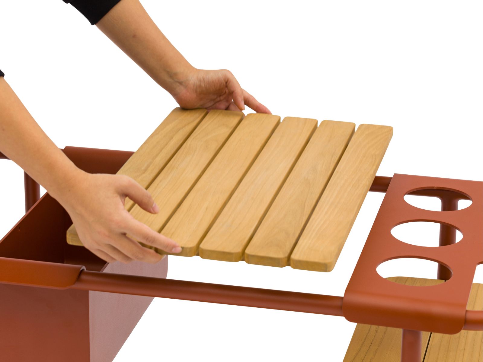 מגשי עץ ומצנן בקבוקים ניתנים לשליפה ומאפשרים למקם אותם בקלות על מסגרת העגלה בהתאם לצרכים שונים. פתרון אידיאלי ליצירת חוויית אירוח איכותית בחוץ עם חברים ובני משפחה.