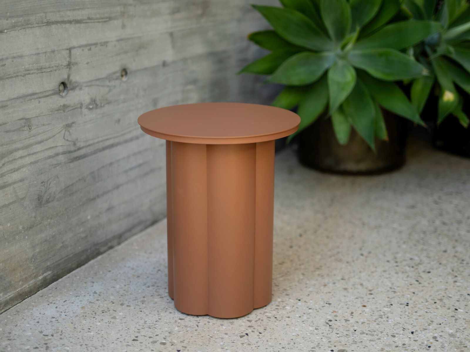 שולחן צד בעיצוב מיוחד ודקורטיבי, עשוי אלומיניום ומתאים לחלל פנימי וחיצוני.