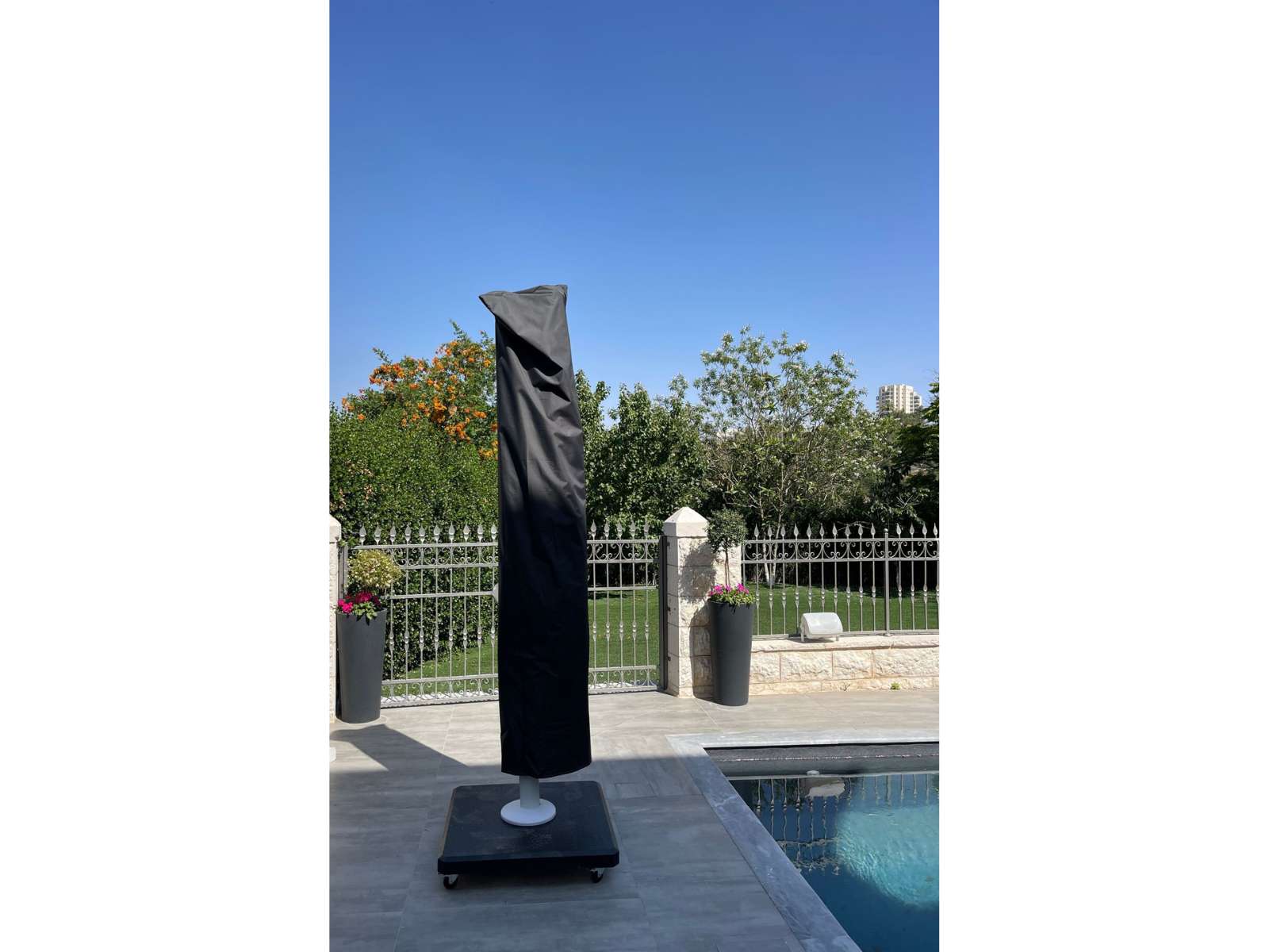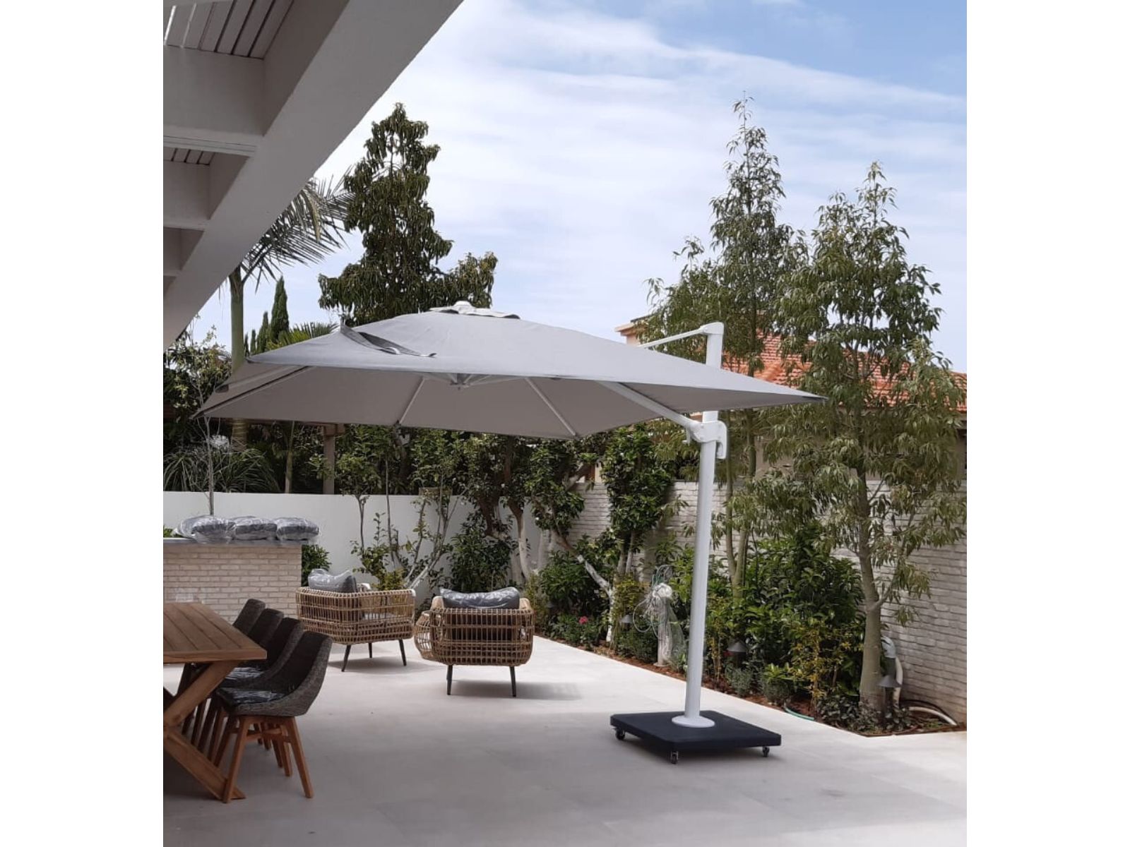 שמשיית צד גדולה ואיכותית מתכווננת ומסתובבת במקום, בסיס ״בילד אין״ בעל 4 גלגלים- אפשרות לנייד בקלות. השמשייה מגיעה עם כיסוי מתאים.