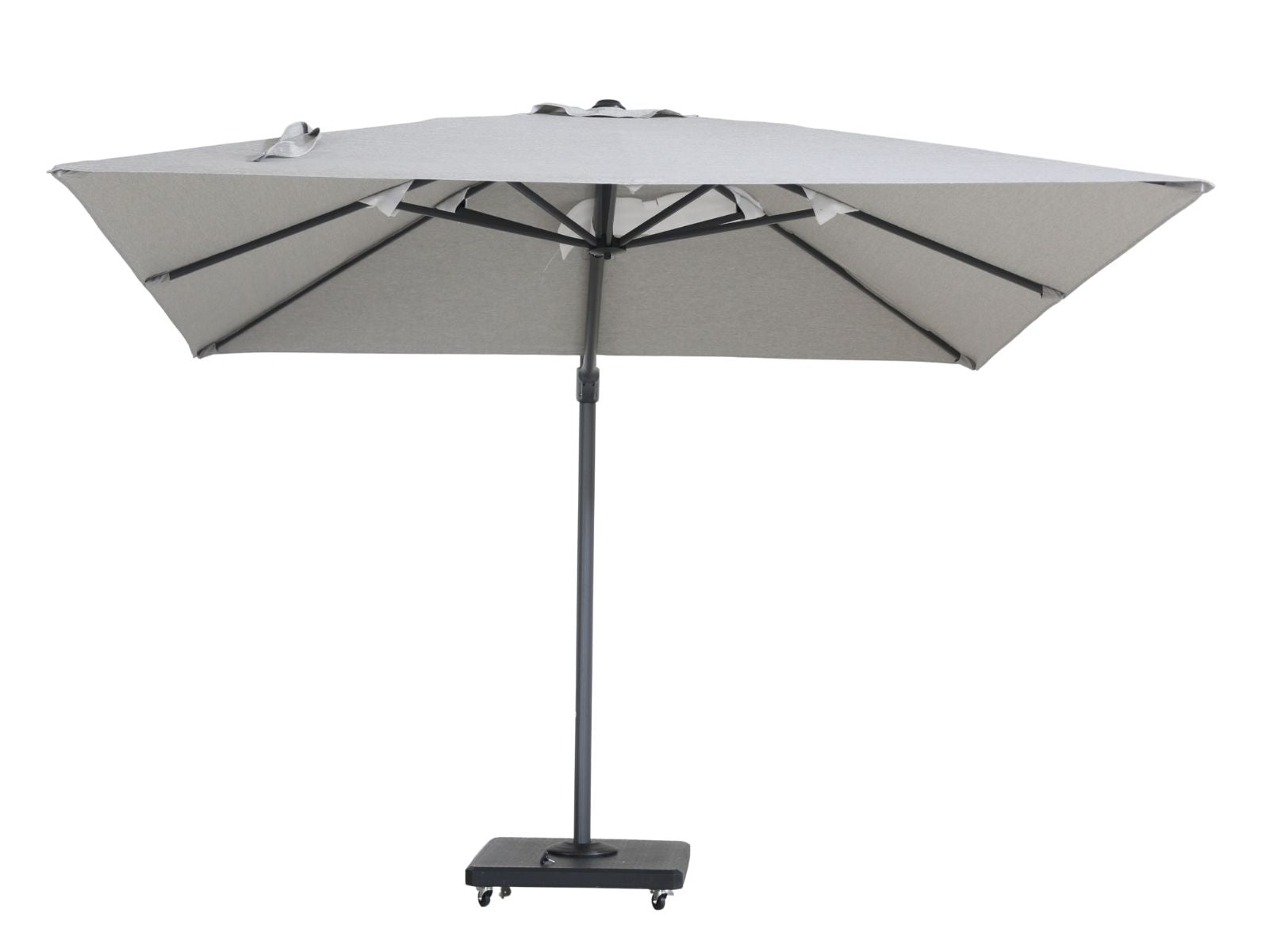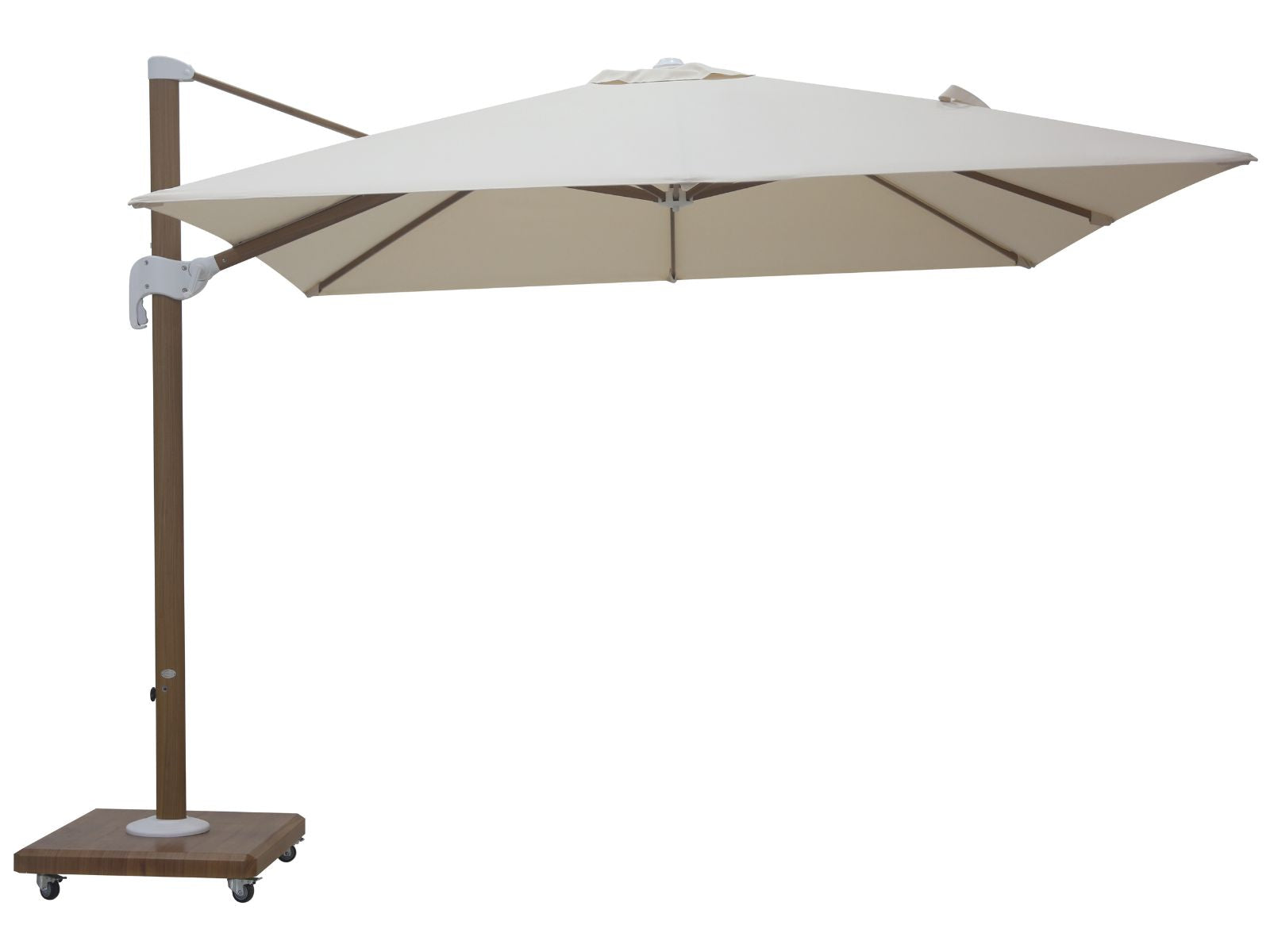 שמשיית צד גדולה ואיכותית מתכווננת ומסתובבת במקום, בסיס ״בילד אין״ בעל 4 גלגלים- אפשרות לנייד בקלות. השמשייה מגיעה עם כיסוי מתאים.