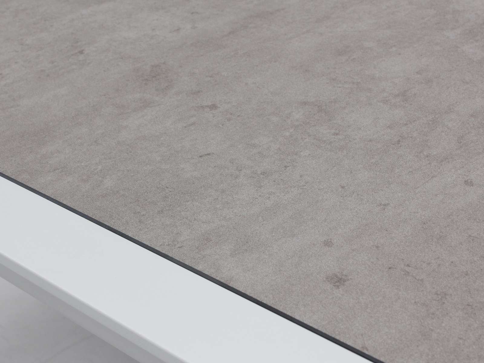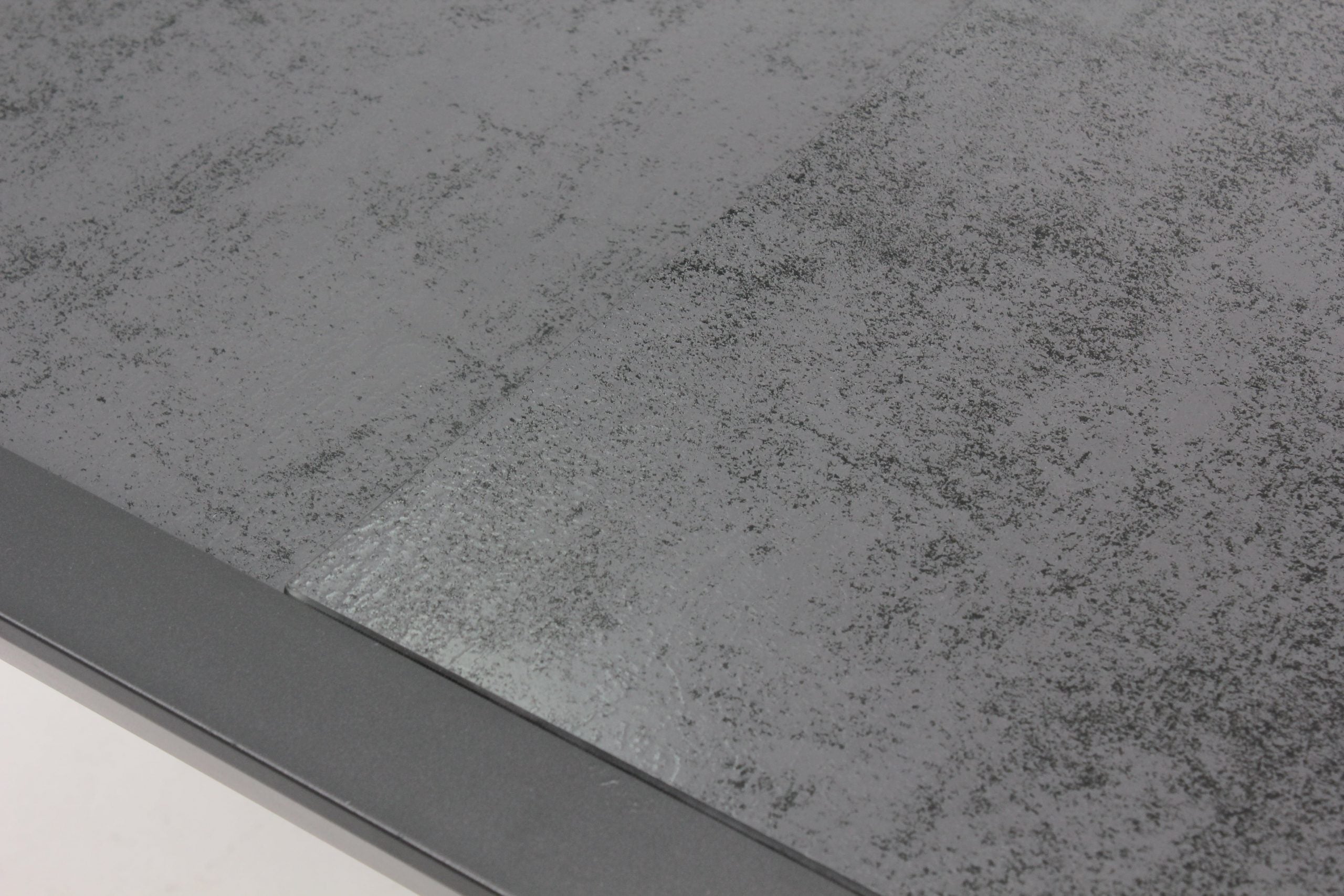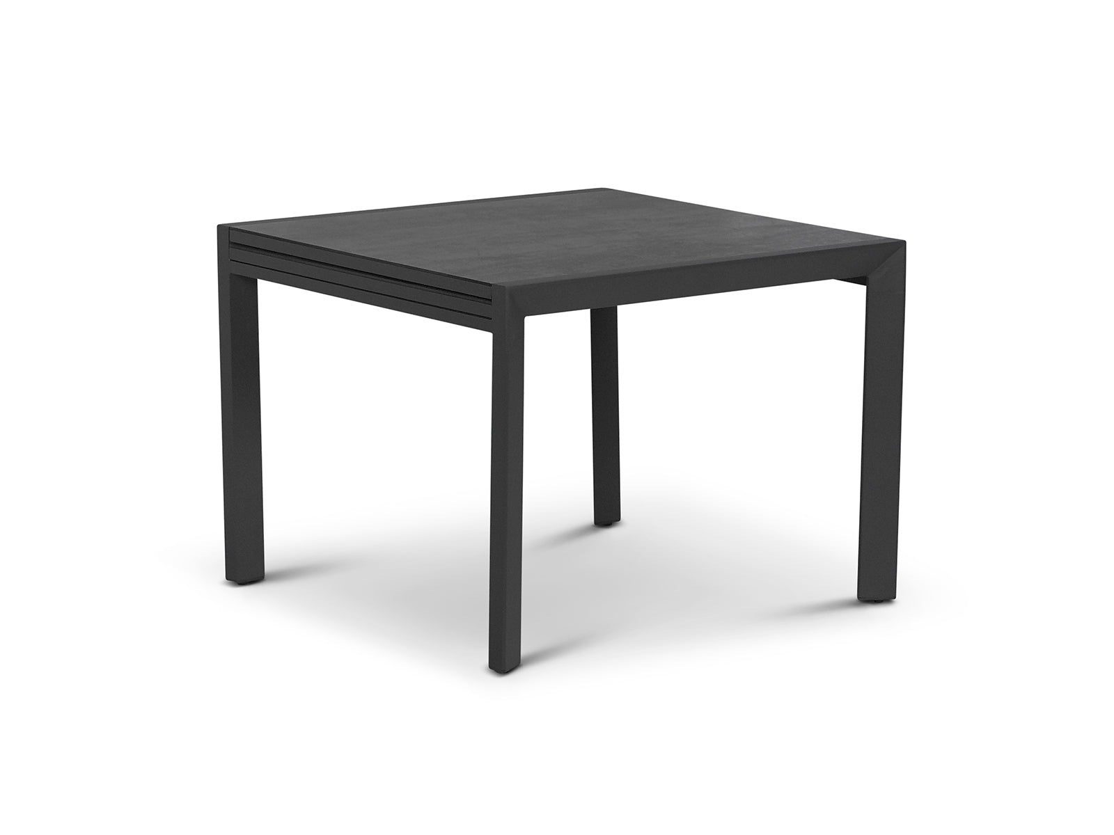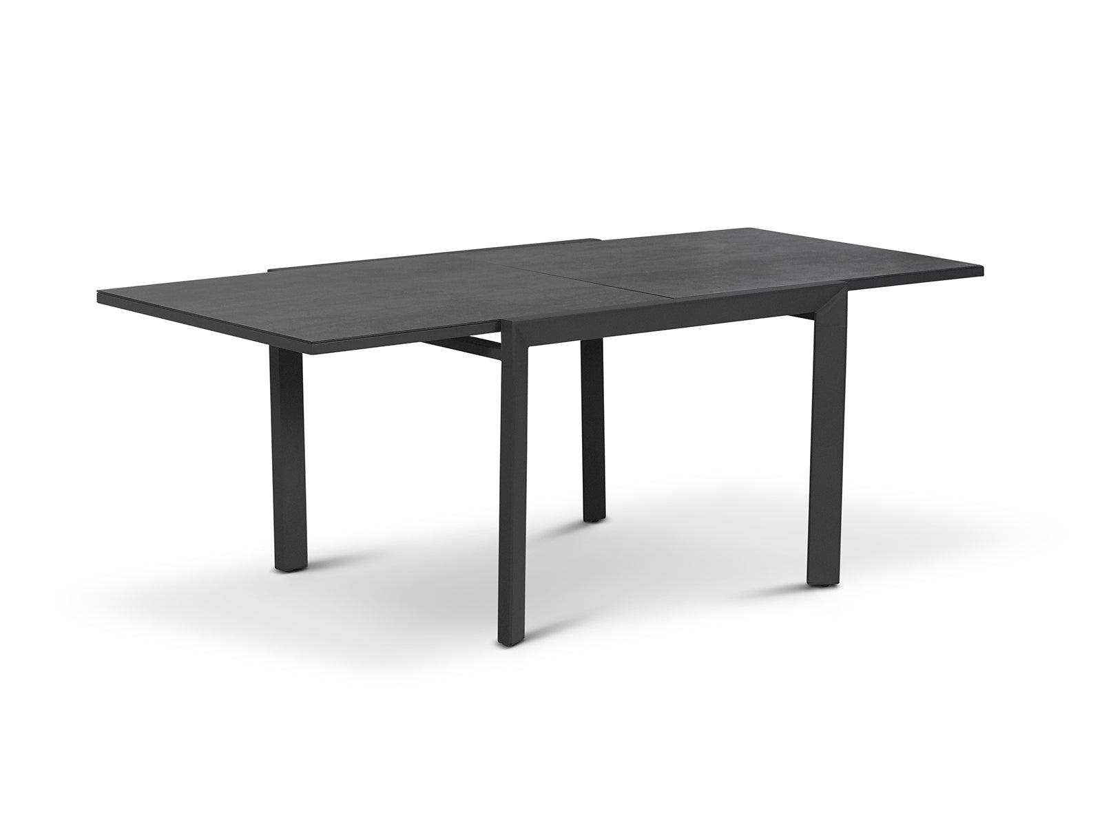 השולחן עשוי אלומיניום עם משטח זכוכית עליון במראה דמוי שיש, פרקטי קל לניקוי והזזה, בעל מנגנון פתיחה נח לתפעול.