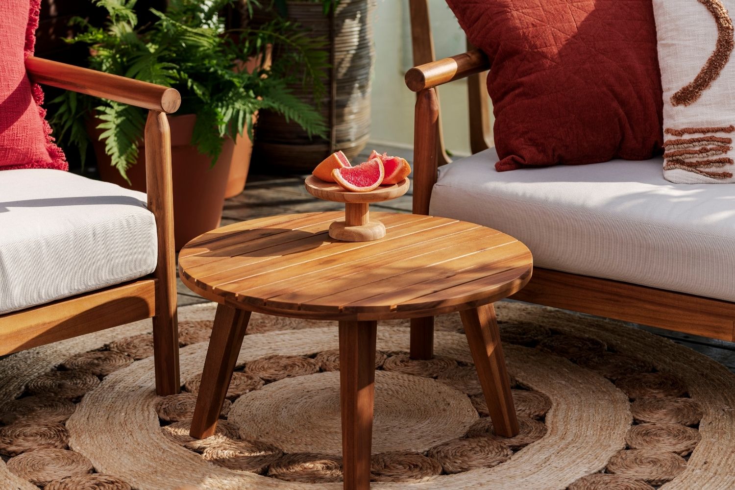 שולחנות קפה: גובה 26 קוטר 80 ס"מ וגובה 33 קוטר 60 ס"מ
