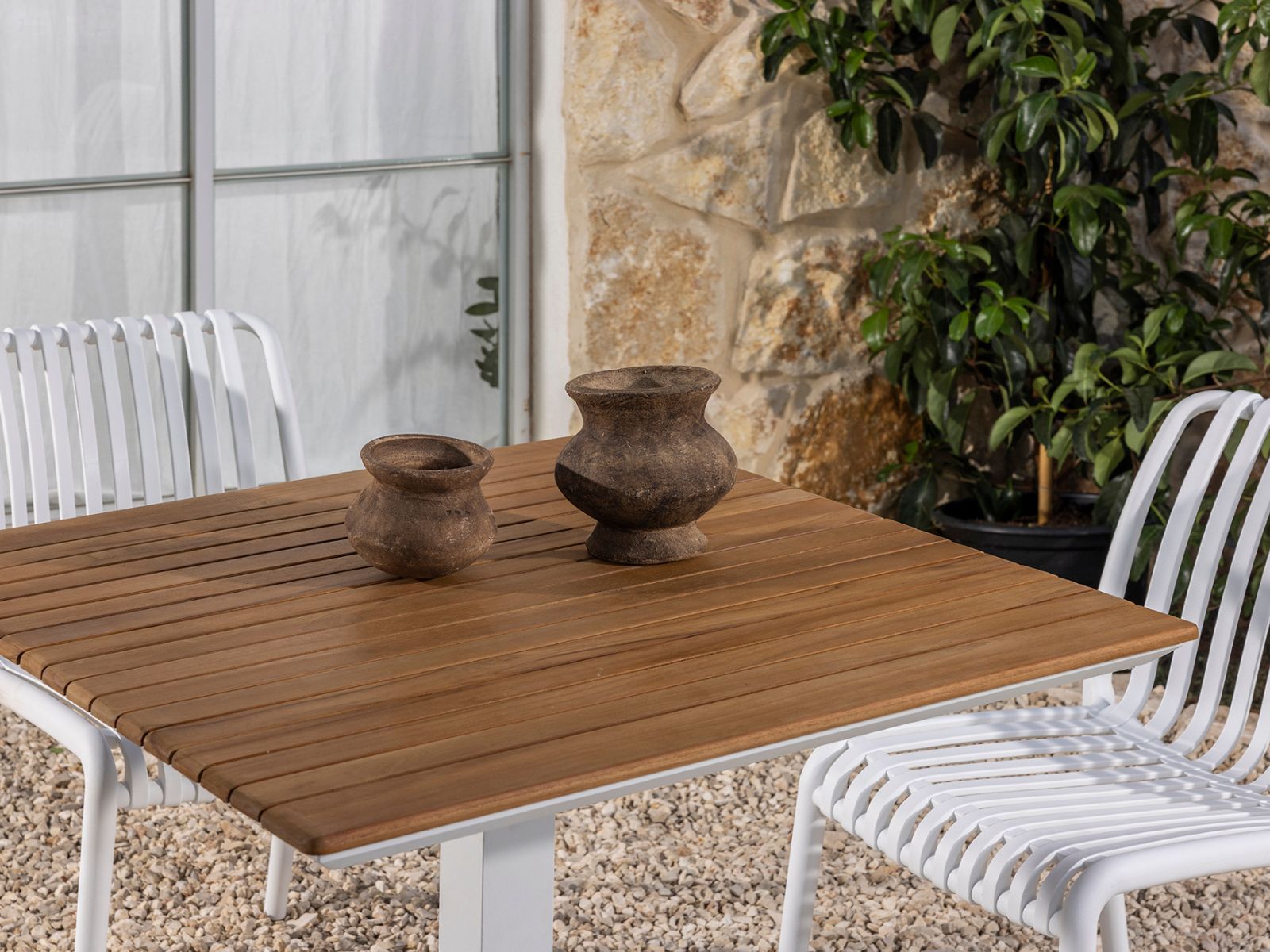 שולחן מרובע מעץ ואלומיניום הוא תוספת מושלמת לכל מרפסת. השולחן עשוי מחומרים איכותיים: טופ השולחן עשוי מעץ טיק ורגל אמצעית מאלומיניום בשיטת צביעה ייחודית. בעל עיצוב מודרני ופונקציונלי. המחיר הינו עבור השולחן בלבד ואינו כולל כיסאות.