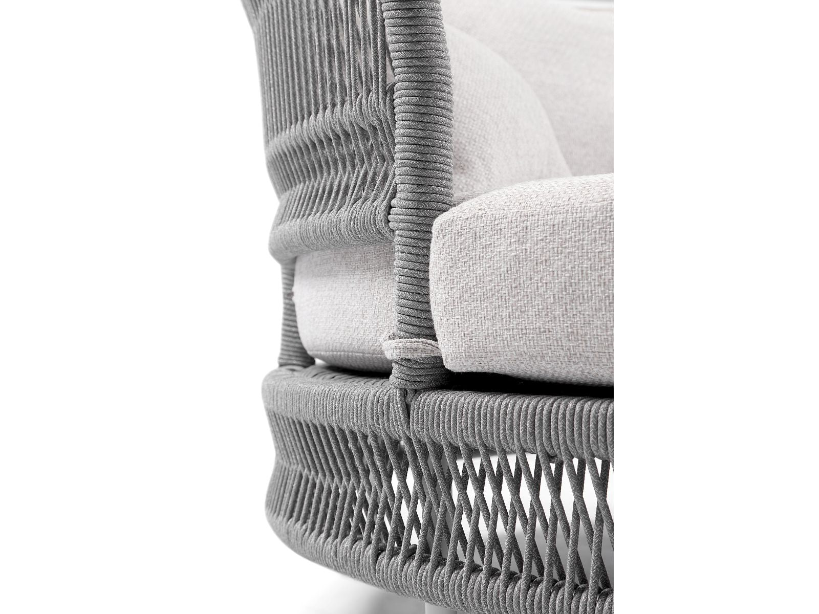 עשוי שלדת אלומיניום בחיפוי חבלי חוץ עמידים, מזרן עבה ונח במיוחד וכריות מרופדות בבד חוץ איכותי, עמיד ונעים למגע.