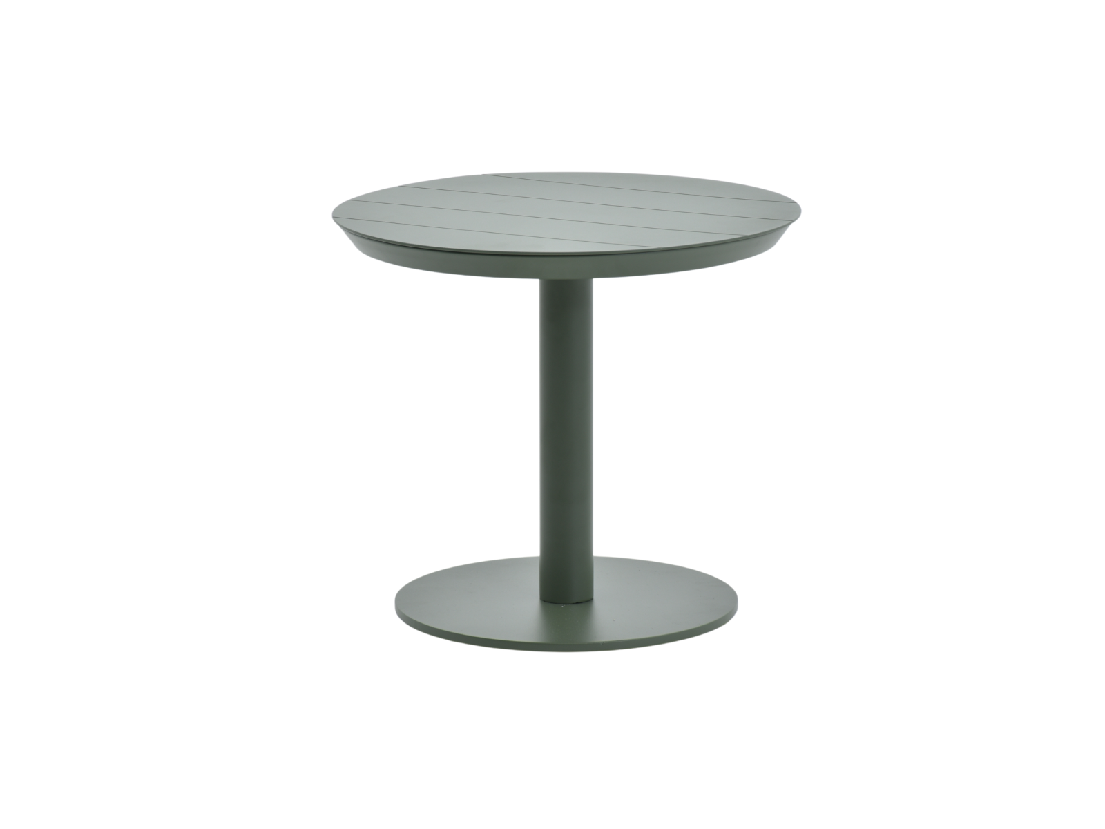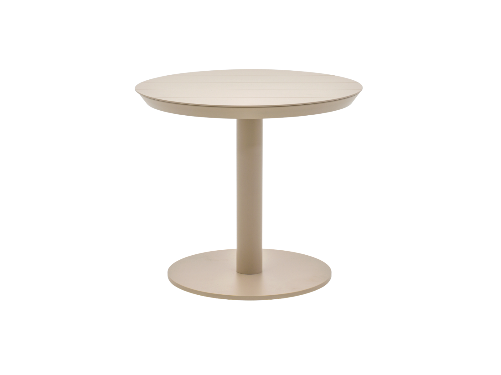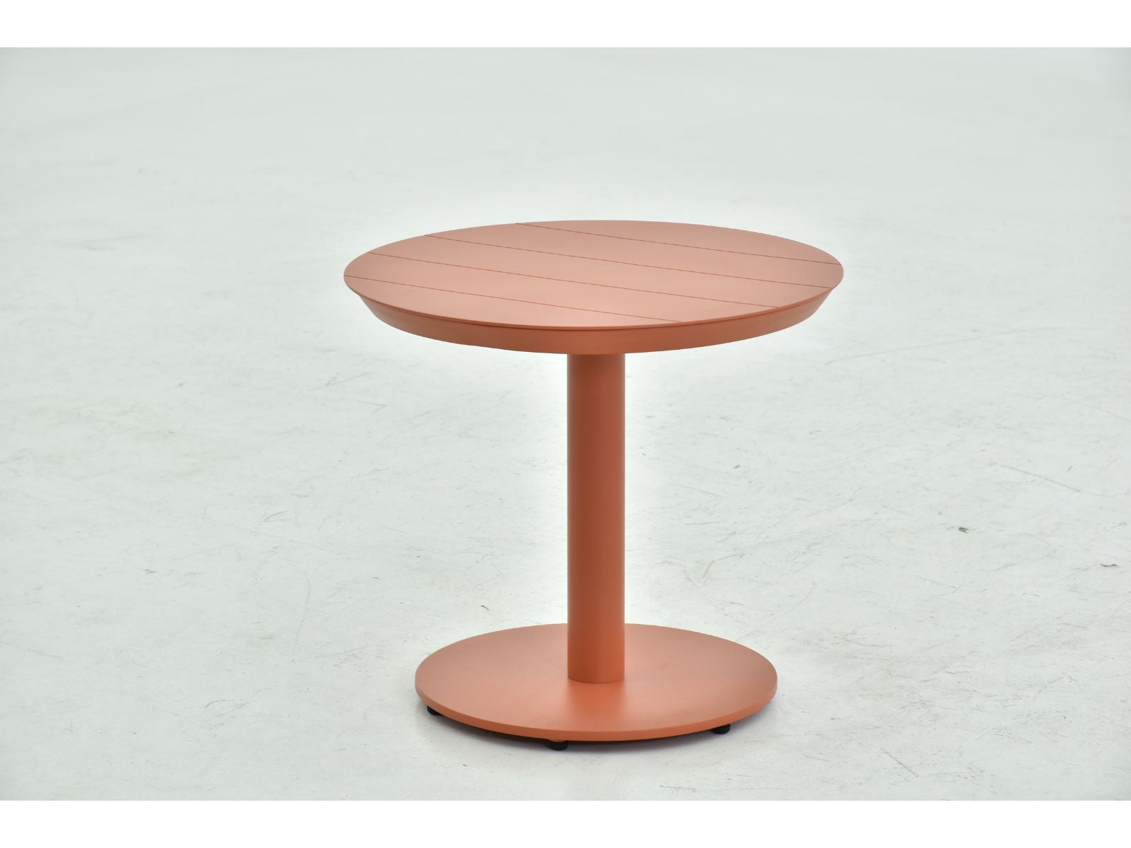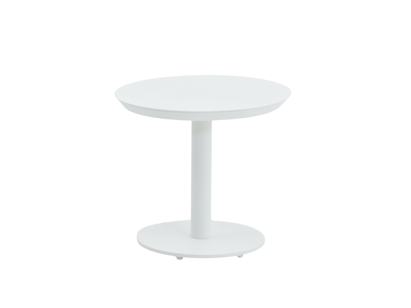 שולחן צד עגול בעיצוב מינימליסטי. פריט פונקציונלי ורב-תכליתי.