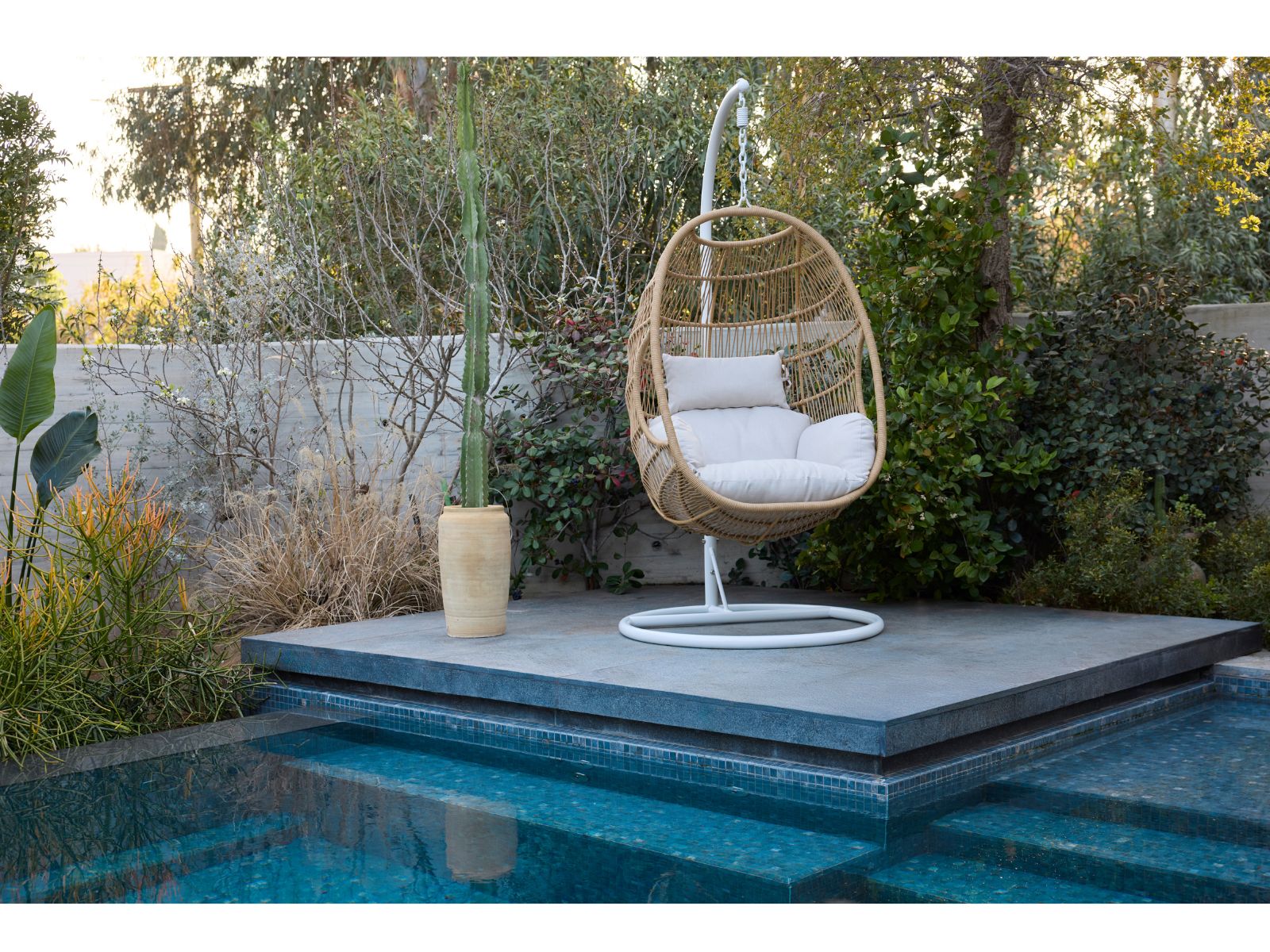 ערסל עשוי שלדת מתכת מכוסה ראטן סינטטי קליל ועמיד, בתוספת כרית מפנקת לנוחות מקסימלית.