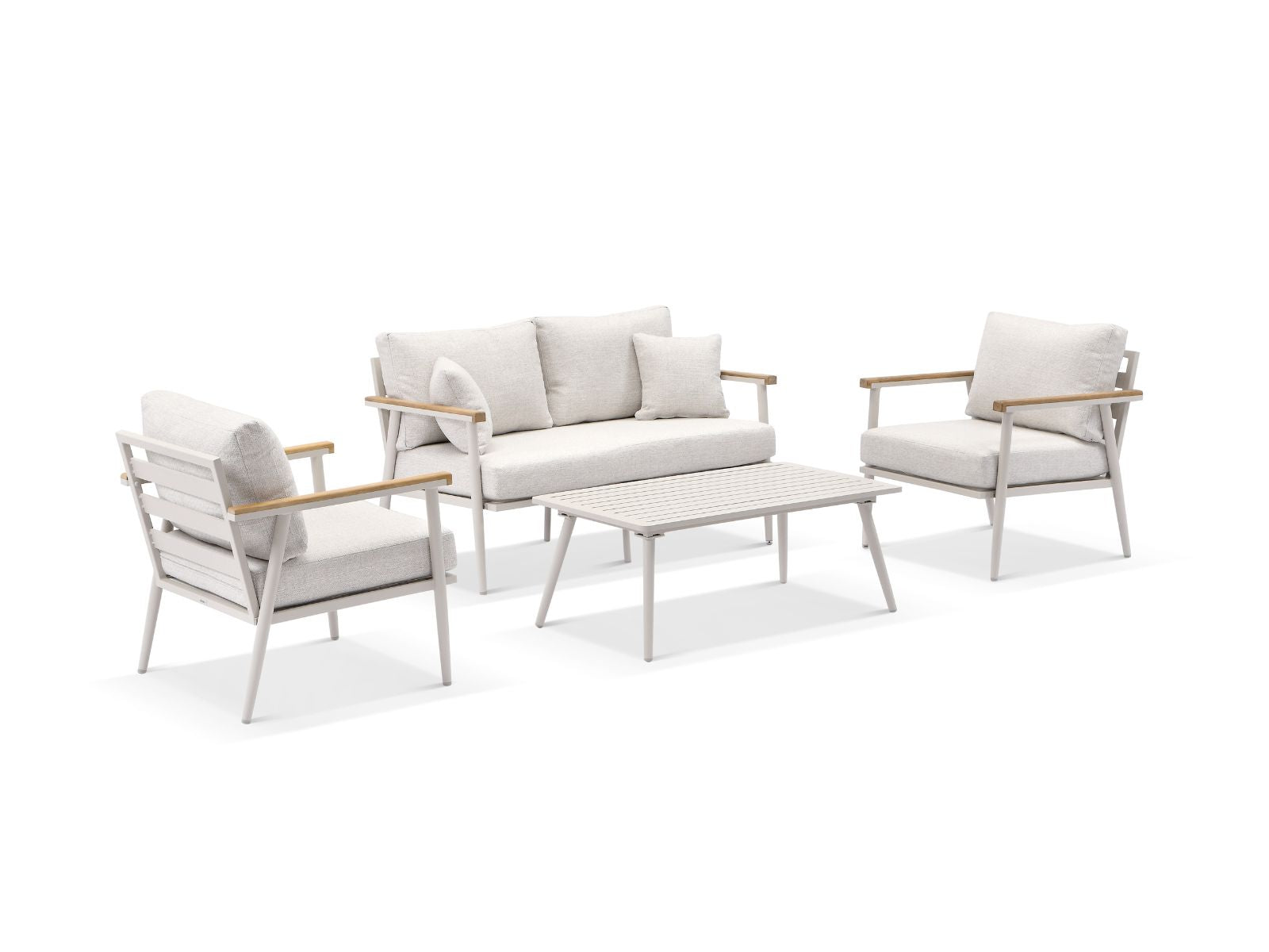 מסגרת המערכת עשוייה אלומיניום בשילוב ידיות עץ טיק.