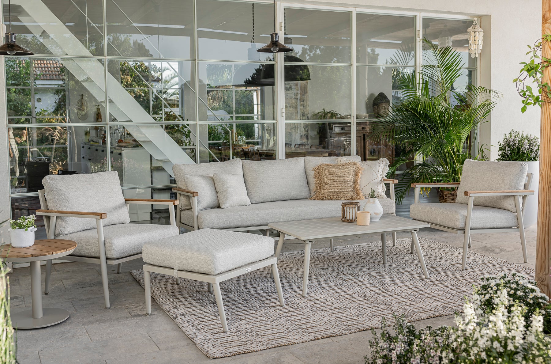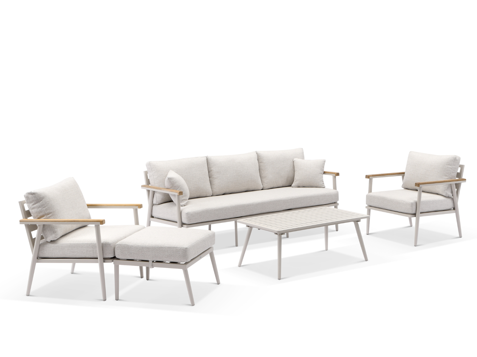 מסגרת המערכת עשוייה אלומיניום בשילוב ידיות עץ טיק.