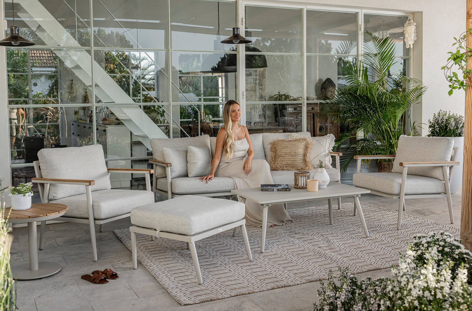 כריות מושב וגב עבות ומפנקות, מרופדות בבד חוץ איכותי, עמיד ונעים למגע.